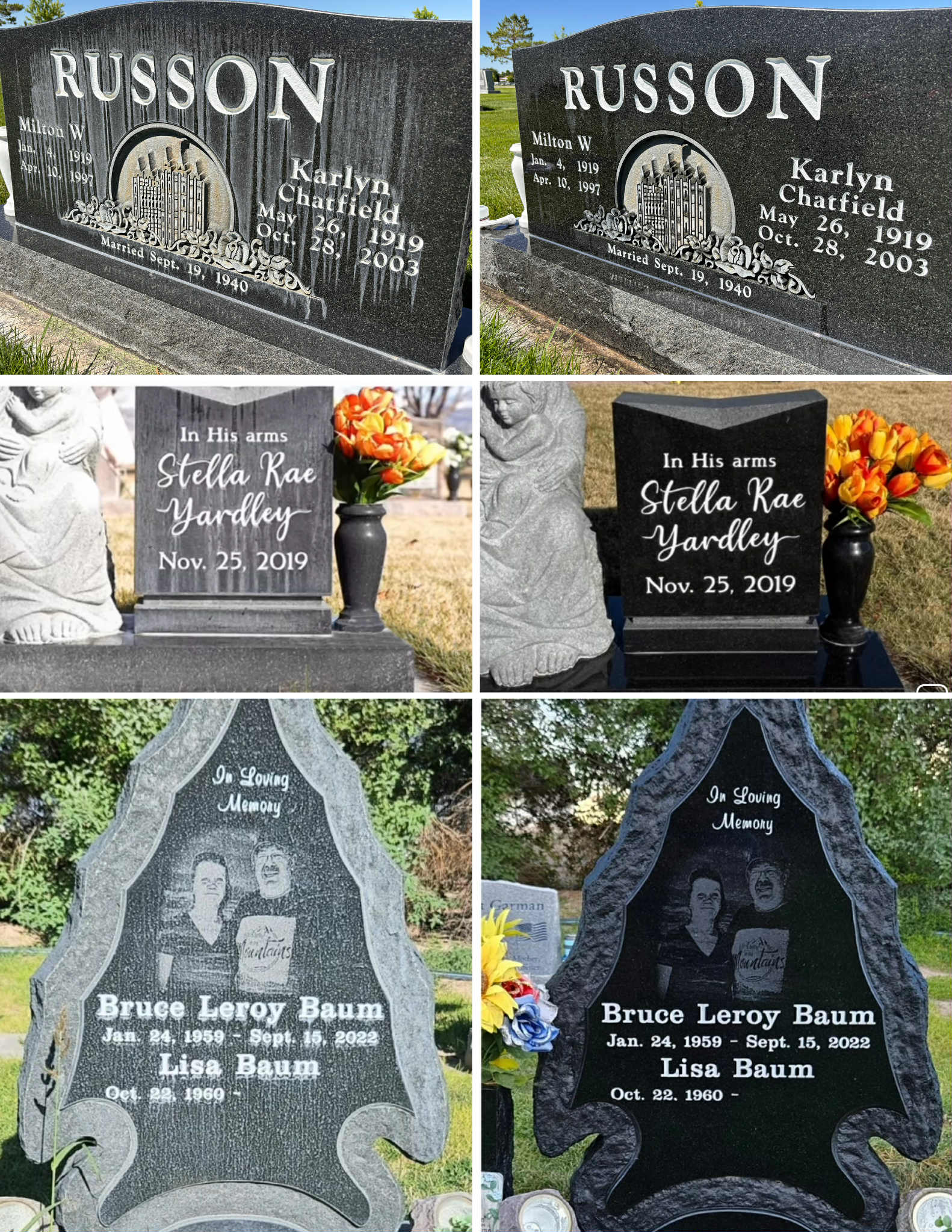 If needed, gently scrape off hard water and other stains with razor blade (on granite headstones only)